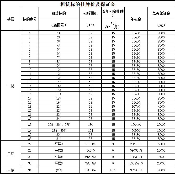 8、租金:首個租賃年度(12個月為一個租賃年度)年租金(含稅)為公開競價確定的成交價。