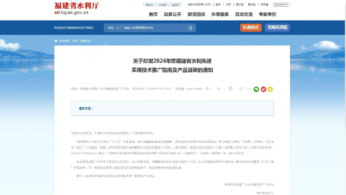 近日,福建省水利廳公布《2024年度福建省水利先進(jìn)實(shí)用技術(shù)推廣指南及產(chǎn)品目錄》,集團(tuán)公司所屬水投設(shè)計(jì)公司“水利水電工程生態(tài)流量核定與保障技術(shù)”“智能化新型分子篩凈水設(shè)備”以及水投科技公司“基于QGIS開源技術(shù)棧的供水管網(wǎng)GIS在線編輯平臺”等3項(xiàng)成果成功入選。