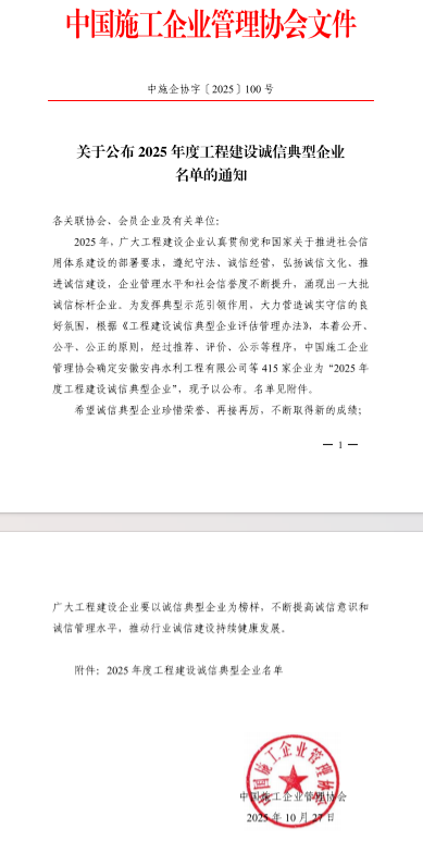 工程建設(shè)誠(chéng)信典型企業(yè)評(píng)價(jià)工作是由中國(guó)施工企業(yè)管理協(xié)會(huì)組織開(kāi)展,旨在增強(qiáng)工程建設(shè)行業(yè)自律意識(shí),提高合規(guī)管理水平,推動(dòng)行業(yè)信用建設(shè)高質(zhì)量發(fā)展。本次獲評(píng),充分彰顯了業(yè)界對(duì)公司長(zhǎng)期以來(lái)堅(jiān)持誠(chéng)信經(jīng)營(yíng)、推動(dòng)行業(yè)高質(zhì)量發(fā)展的高度認(rèn)可。