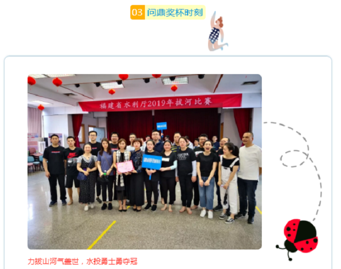 4月26日,集團(tuán)公司參加水利廳直屬機(jī)關(guān)工會(huì)拔河比賽,經(jīng)過(guò)三輪激烈的角逐,一路過(guò)關(guān)斬將,從15支參賽隊(duì)伍中脫穎而出,勇奪桂冠,這是集團(tuán)公司連續(xù)五年蟬聯(lián)水利廳直屬機(jī)關(guān)工會(huì)拔河冠軍。